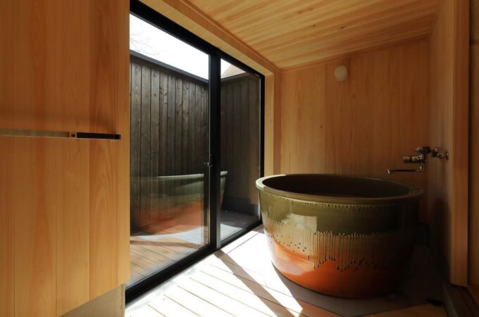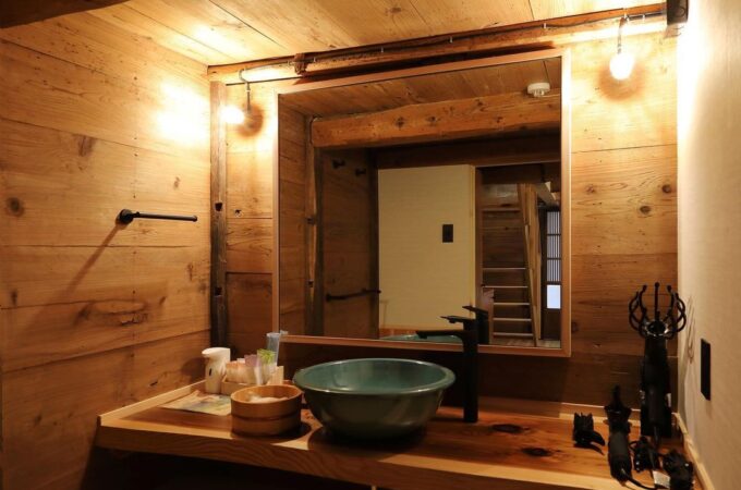 築150年。空き家になってた古民家を宿泊施設にリフォーム。部屋の事に洗面台を設置。信楽焼の洗面台と木材が空間にすごく合っています。...